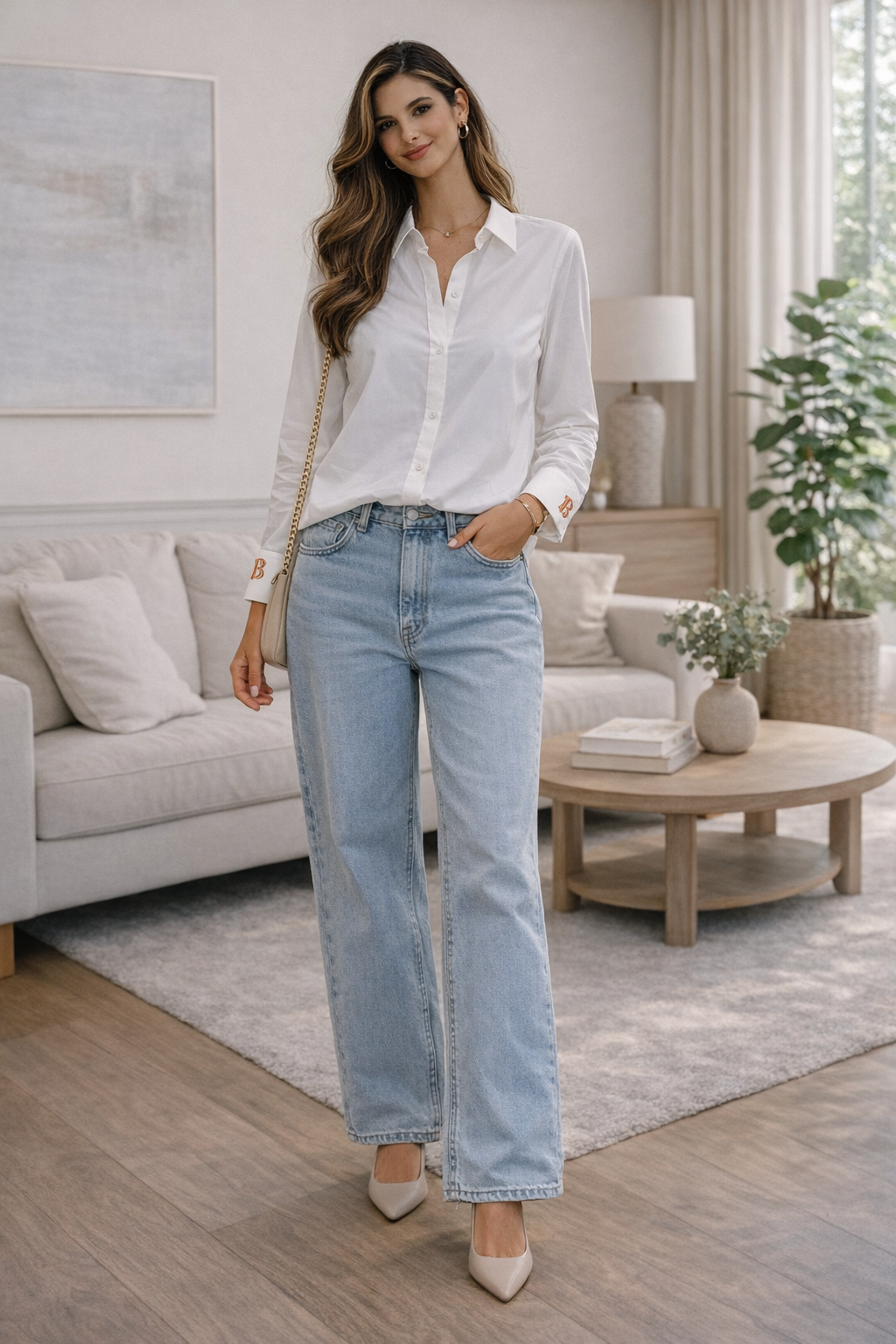 This white popelin shirt combines classic tailoring with a modern twist. The B logo on the sleeves adds a subtle statement while keeping the look clean and elegant.